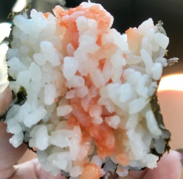 Looking to be a little more adventurous? If you’ve never had mentaiko musubi, you are missing out! “Mentaiko” is cod roe mixed with a little of Japanese mayo. While it may be an acquired taste for some, this creamy and umami-filled musubi never is another favorite of mine.